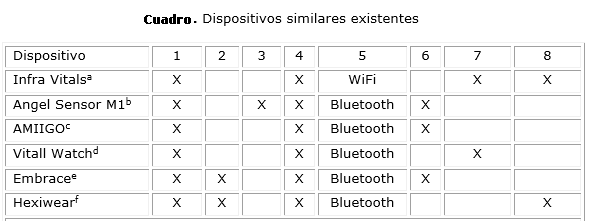En el cuadro se resumen diferentes dispositivos inteligentes comerciales, desarrollados a nivel global, que reúnen la mayoría de los requerimientos previamente definidos, disponibles para la solución.