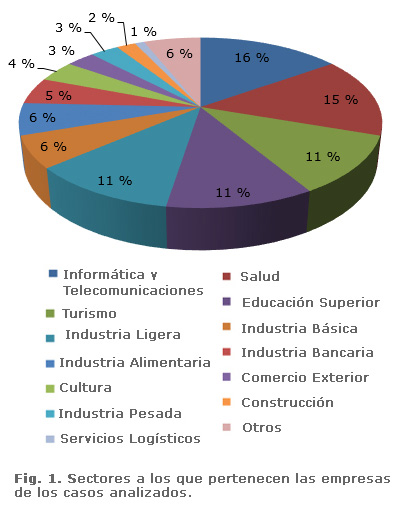 En todos los casos analizados en el cuadro 1 se identifica un conjunto de problemáticas que se consideran son resultado de brechas conceptuales, que tienen lugar en varios sectores industriales, como los mostrados en la figura 1. Estas conceptualizaciones incompletas o parcializadas se han identificado como causa de desempeño empresarial fraccionado, carente de visión sistémica como organización. Los hallazgos realizados en la investigación de campo se contrastaron con la experiencia de especialistas en dos momentos y contextos diferentes.