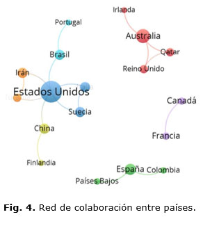 Algunos países emergentes, como Irán,42 con el incremento de universidades de la salud no solo presentan investigaciones, sino que tienden a trabajar en colaboración junto a países con una buena consolidación científica, como Estados Unidos. Los países con mayores ingresos son los que presentan mayor número de colaboraciones internacionales. Australia, Estados Unidos y Reino Unido son los máximos exponentes.43 Estos tres países, por su centralidad en la red de colaboración analizada, son los considerados de prestigio. Sin embargo, serán Estados Unidos, China y Finlandia los países con una mayor facilidad para la creación de grupos de investigación.