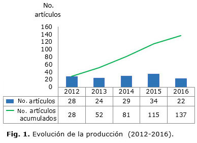 Resultados: se recuperaron 137 registros de 86 revistas. El crecimiento