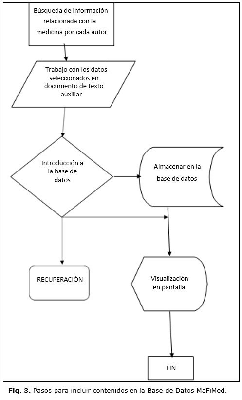 A continuación, se presentan los pasos a seguir para incluir contenidos en la base de datos MaFiMed, lo cual a modo de diagrama se muestra en la figura 3.