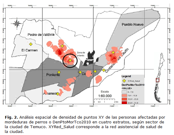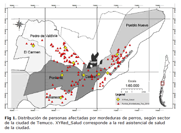 Entendiendo que siempre los recursos económicos y humanos en los sistemas de salud son escasos, es posible que un SIG, como parte de los instrumentos de gestión de información en salud, pueda ayudar a dar respuesta a estas preguntas. Por eso, el objetivo de esta investigación fue identificar los productos de información generados por un sistema de información georreferenciado, utilizando como ejemplo el caso de personas mordidas por perros en la ciudad de Temuco.