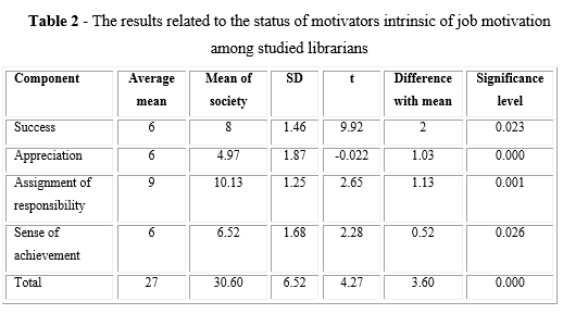 2. How is the status of motivators (intrinsic factors) according to librarians of special libraries of Ahvaz compared to average level?