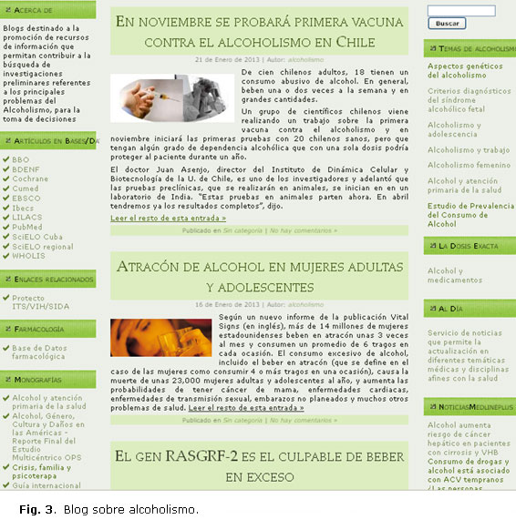 Se designaron las distintas fuentes de información referente al tema. Se puede acceder a través de: http://blogs.cmw.sld.cu/alcoholismo (Fig. 3).
