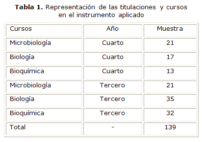 La investigación se centró en la educación de pregrado de la Facultad de Biología de la Universidad de La Habana, por ser el centro rector de la enseñanza en esta área científica, durante dos cursos académicos: 2008-2009 y 2009-2010. Las titulaciones objeto de este estudio fueron la Licenciatura en Microbiología, la Licenciatura en Biología y la Licenciatura en Bioquímica, y la unidad de análisis los estudiantes de estas titulaciones. Los de 3er. y 4to. años constituyeron la muestra no probabilística utilizada. A partir de la literatura consultada, el estudio empírico-descriptivo se desarrolló en varias etapas concatenadas: