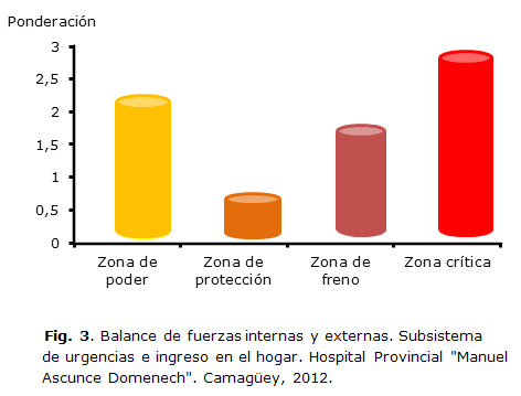 Es indudable que en la actividad de control estadístico referente al Servicio de Urgencias en el Hospital Provincial, predominan las debilidades sobre las fortalezas. De igual modo, se está en presencia de un subsistema vulnerable, desprotegido ante las amenazas, en el que las oportunidades no son aprovechadas debidamente (Fig. 3).