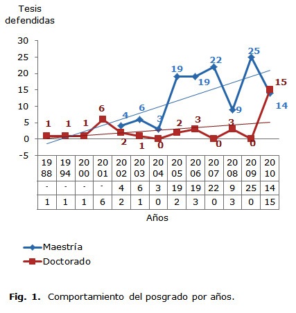 - Cantidad de tesis defendidas por año y grado.- Comportamiento del posgrado por años.