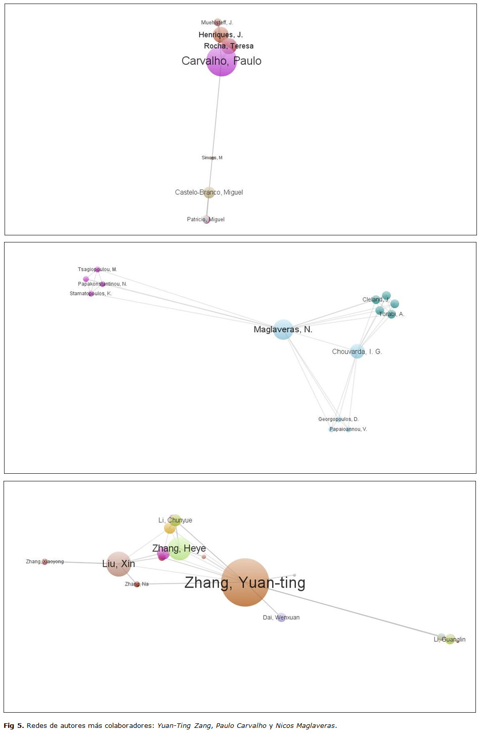 Los nexos colaborativos que se establecen entre el cuarteto más prominente responden a investigaciones relacionadas con el abordaje del éxito del tratamiento médico como parte crucial de los pacientes cardíacos crónicos, que se concentran en los métodos que aplican el análisis de bioseñales en los datos de los signos vitales, específicamente en aquellos relacionados con la detección de diferencias por las inconsistencias del tratamiento.