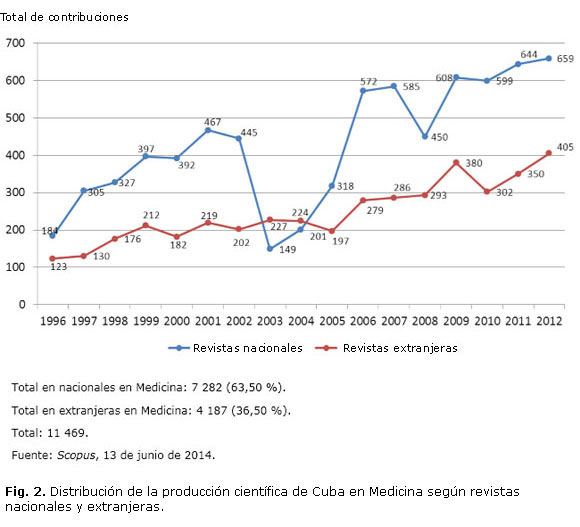 Key words: scientific production, citation, health, medicine, national and foreign journals, Cuba, Scopus.