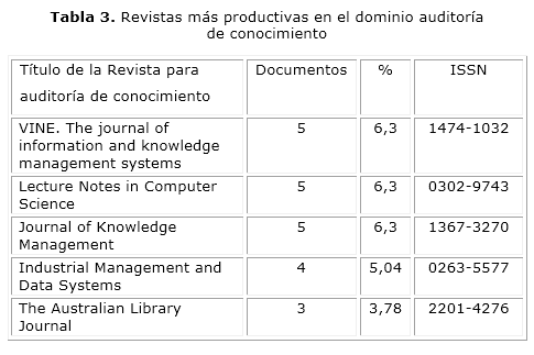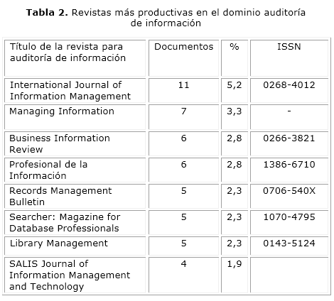 DOMINIO AUDITORÍA DE INFORMACIÓN. REVISTAS MÁS PRODUCTIVAS