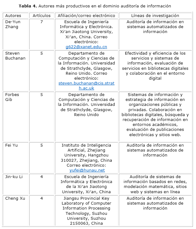 AUDITORÍA DE INFORMACIÓN. AUTORES MÁS PRODUCTIVOS