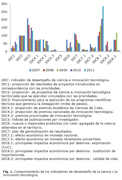 El índice de publicaciones de las ECITs visitadas por año se mantuvo como promedio en 1,3 publicaciones por investigador en revistas especializadas certificadas por el CITMA o reconocidas en bases de datos internacionales. Los nuevos o mejorados productos con valor agregado de la ciencia mostraron en el 2011 una reducción en relación con el 2010. A diferencia de otros años, su identificación se concentró en la nomenclatura territorial, la del CITMA-Polo, y la de algunas empresas priorizadas.En el plan de generalización en los últimos dos años disminuyó el número de resultados porque se definieron los prioritarios para la provincia durante el trienio 2010-2012, atendiendo a su impacto en: medio ambiente, producción de alimentos, salud, eficiencia energética, construcción de viviendas, calidad de vida, y defensa. En el 2011 el efecto económico se incrementó en relación con los dos años precedentes, en lo que influyeron principalmente los resultados de los centros del Polo del Oeste.