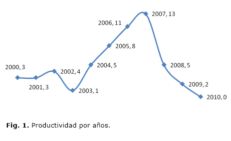 Se accedió a la versión electrónica de la revista y a la colección de trabajos de diploma en formato digital para la consulta de las fuentes primarias. Se confeccionó una base de datos con el gestor bibliográfico EndNote X3 con un total de 55 registros. Esto permitió el procesamiento de los datos y el cálculo de indicadores unidimensionales y bidimensionales (cuadro):