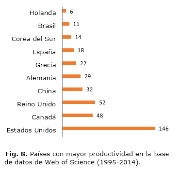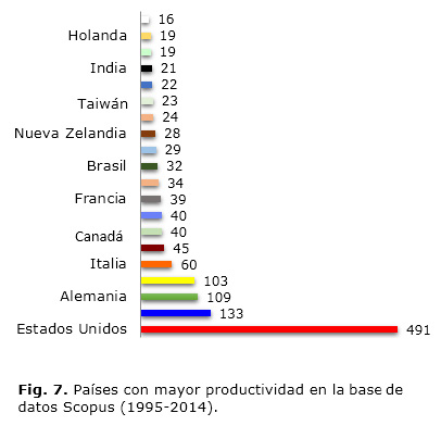 es Estados Unidos con 491 artículos indexados seguido por el Reino Unido