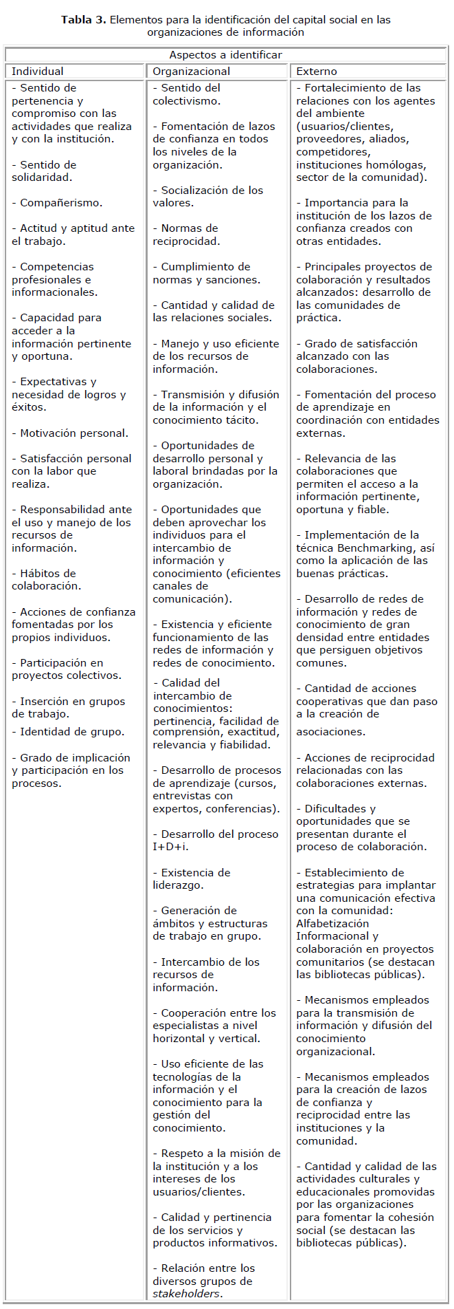 La identificación del capital social en organizaciones de información y su relación con la gestión del conocimiento