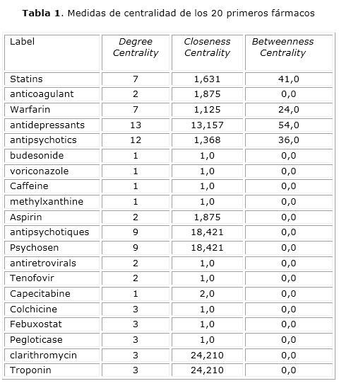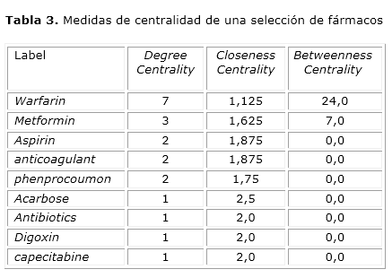 de interacciones farmacológicas en MEDLINE con el uso de medidas de centralidad