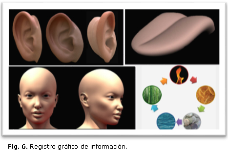 El sistema, además del registro textual de información, también permite registrar gráficamente información relacionada al oído, lengua, cara, pulso y elementos, teniendo en cuenta que los datos que se obtienen son importantes para establecer el diagnóstico, guiar el tratamiento y, por tanto, llevar un registro de la evolución de los pacientes (Fig. 6).