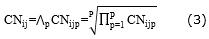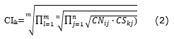 Una vez que se conocen los criterios de los participantes, se tendrán tantos coeficientes como participantes (CNijp y CSkjp), por lo que es necesario condensarlos en una expresión cuantitativa que represente razonablemente el comportamiento de estas opiniones. Los coeficientes CNij y CSkj son la conjunción de todos los criterios de las personas involucradas, lo que se puede modelar como muestran las ecuaciones 3 y 4. Para el cálculo de estas ecuaciones también se emplean los operadores de Lógica Difusa Compensatoria,25 que mediante la media geométrica obtienen una medida de consenso del grupo de decisores.