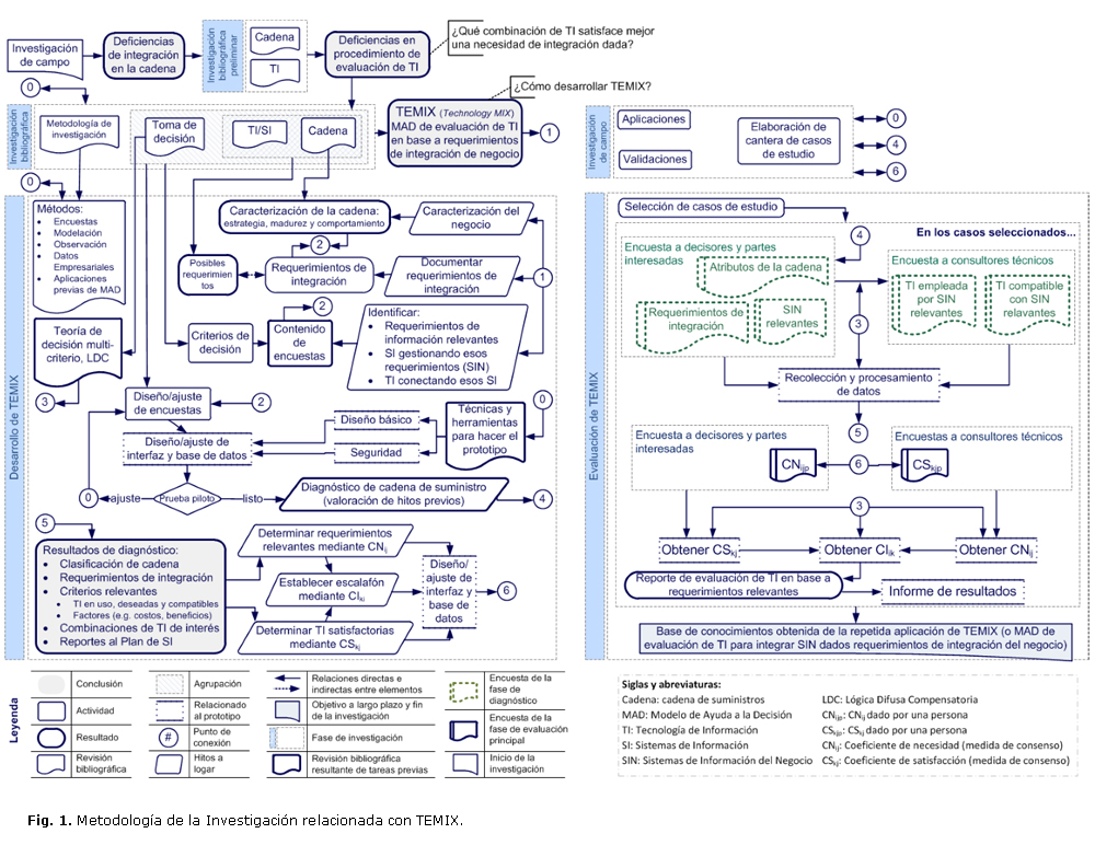 El enfoque aquí empleado para la evaluación de las TI consiste en un modelo de decisión, nombrado TEMIX (Technology MIX), en proceso de automatización mediante herramientas Web (cliente-servidor), que ayuda a caracterizar la cadena de suministros de la empresa, evaluar tecnologías de información empleadas y deseadas, y a determinar qué criterios de evaluación priorizar dada la situación para evaluar cualitativamente la satisfacción de las TI diagnosticadas a requerimientos de integración de información relevantes para la situación del negocio.