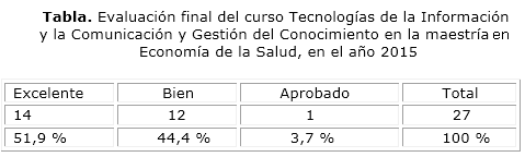 Tecnologías de la información y la comunicación en la maestría en Economía de la Salud